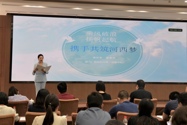 為響應(yīng)集團(tuán)黨委號(hào)召,進(jìn)一步貫徹落實(shí)集團(tuán)半年總結(jié)大會(huì)精神,展現(xiàn)職工昂揚(yáng)向上的精神風(fēng)貌,激發(fā)職工干事創(chuàng)業(yè)的豪邁熱情,7月27日,河西集團(tuán)總部舉辦了“踔厲奮發(fā)向未來(lái) 我與河西共成長(zhǎng)”主題演講選拔賽。本次選拔賽由機(jī)關(guān)黨總支和機(jī)關(guān)工會(huì)共同舉辦,共有來(lái)自各部室的8組選手參加。各部室主要負(fù)責(zé)人出席了本次比賽并擔(dān)任評(píng)委,機(jī)關(guān)工會(huì)主席、辦公室副主任王俊,集團(tuán)工會(huì)副主席、機(jī)關(guān)黨總支書(shū)記、黨群工作部部長(zhǎng)蘇小剛發(fā)表講話。