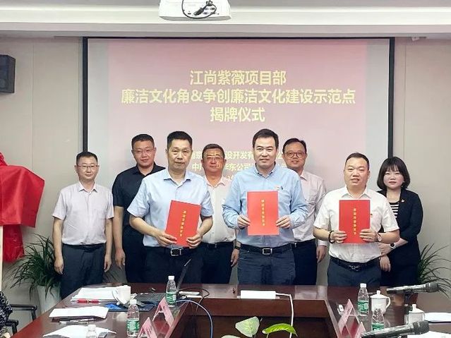 在學(xué)習(xí)貫徹習(xí)近平新時代中國特色社會主義思想主題教育中,為加強清廉教育,引導(dǎo)員工繃緊廉潔自律這根弦,確保工程項目建設(shè)廉潔高效,近日,奧體公司和江山智聯(lián)公司聯(lián)合黨總支(以下簡稱“聯(lián)合黨總支”)在江尚紫薇項目部創(chuàng)建廉潔文化角。相關(guān)參建單位參加。